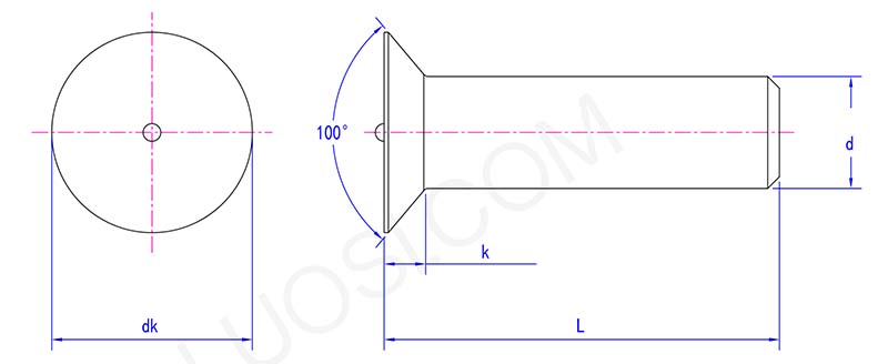 تمت تسمية مسامير الرأس المسطحة 100 درجة على اسم زاوية رؤوسها المخروطية. يضمن هذا التصميم المحدد بزاوية 100 درجة أن يكون اللحام متسقًا تقريبًا مع المادة الأساسية. إنه خيار شائع لمعالجة الصفائح المعدنية أو أي موقف يكون فيه اللحام على السطح ضروريًا للحفاظ على مظهر سلس بصريًا أو وظيفيًا.