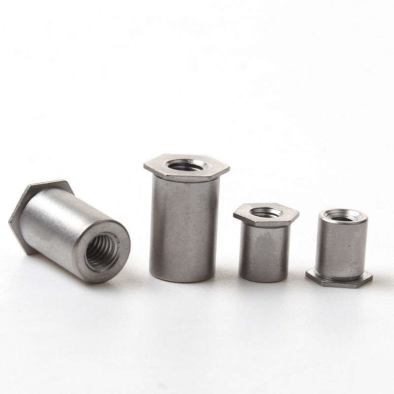 عادةً ما يتم تصنيع عمود صمولة البرشام السداسي من سبائك الألومنيوم القياسي من الفولاذ منخفض الكربون (مثل الدرجات 1008، 1010) أو الفولاذ الكربوني المتوسط عند الحاجة إلى قوة أعلى. وهذا يتيح لهم التشكيل بسهولة أثناء التثبيت مع التمتع بالقوة الكافية لمعظم وظائف التثبيت اليومية. تم إدراج درجة الفولاذ الدقيقة لعمود صامولة برشام محدد في شهادة المواد، فقط تحقق من ذلك للتأكد.