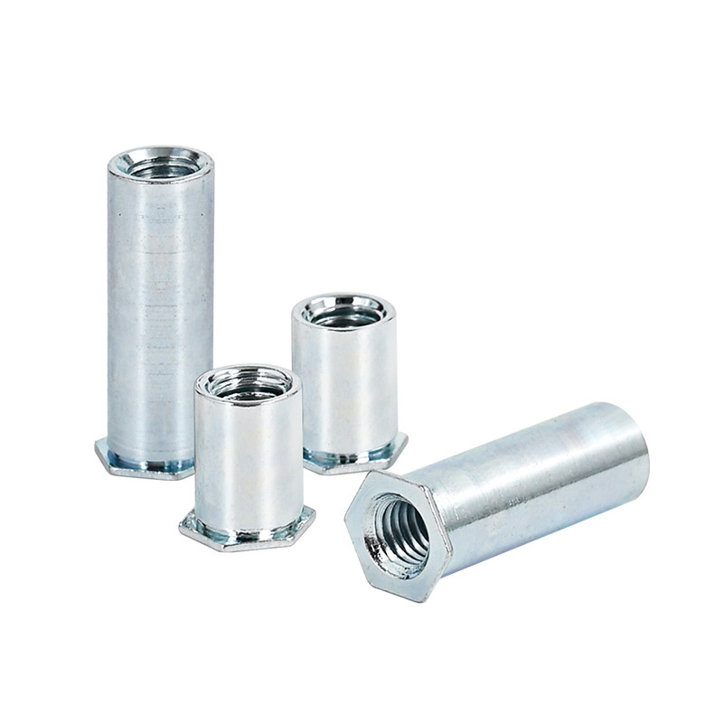 لتثبيت عمود الجوز الكربوني للصلب ، يمكنك استخدام أداة صمومة البرشام. يمنع الجسم السداسي من الغزل عندما تضعه في حفرة مسبقة. تقوم الأداة بسحب رأس المغزل ، مما يجعل عمود الأكمام ينحني على ظهر قطعة العمل. وهذا يخلق نقطة مرساة صلبة ودائمة. يعد مطابقة حجم الفتحة بقطر عمود البرشام أمرًا مهمًا للغاية هنا ، وينجح في ذلك ، ولن يعمل بشكل صحيح.