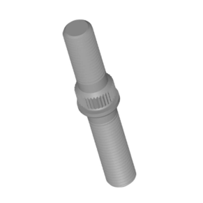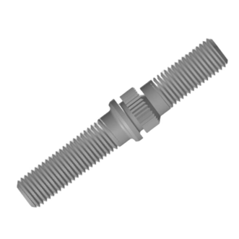 إن مسمار العجلة ذو الطرفين المخرش يكون على شكل "قضيب" أسطواني مستقيم وهو عبارة عن هيكل متدرج بقطر متغير. تتم معالجة كلا الطرفين بخيوط خارجية، ويوجد هيكل مخرش/مسنن في المنتصف، مما قد يزيد الاحتكاك.