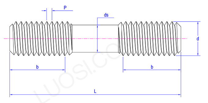 إن مسمار النهاية المزدوجة المتساوية الطول الممتد ككل عبارة عن قضيب معدني نحيف مع خيوط متساوية الطول في كلا الطرفين ، وتمر هذه الخيوط عبر كلا الطرفين. الجزء الأوسط عادة ما يكون قضيبًا ناعمًا وواضحًا. يمكن تخصيص الطول وفقًا للاحتياجات الفعلية.