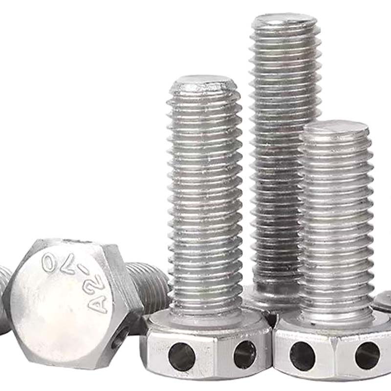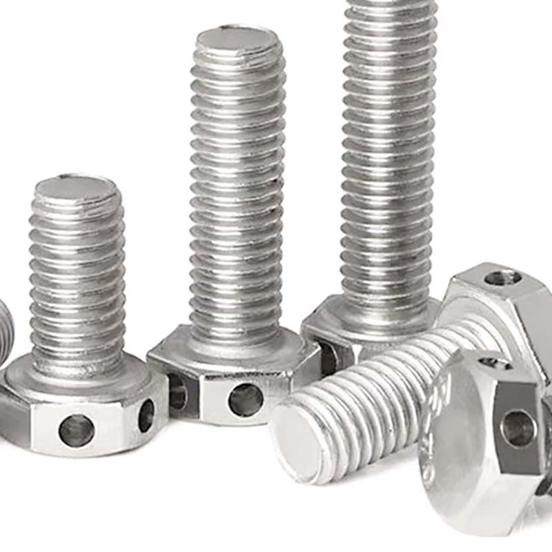 مسامير رأس مسدس مع ثقوب سلكيةتبدو وكأنها مسامير سداسية قياسية ، ولكن هناك العديد من الثقوب الصغيرة المحفورة في رأسها. بهذه الطريقة ، يمكن تمرير الأسلاك أو الكابلات عبر مسامير متعددة. من السهل جدًا تثبيتها وغالبًا ما يتم استخدامها في الآلات أو الدراجات النارية أو المعدات الخارجية ، إلخ.