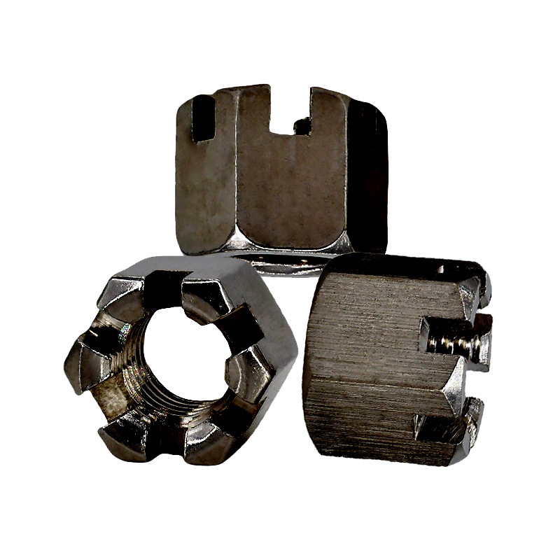 عادةً ما يتم تصنيع صمولة التاج الدقيقة مع الفتحة من الصلب الكربوني القوي أو الصلب سبيكة-مثل الصف 5 أو الصف الثامن أو AISI 4140. هذه الخاصية تمنحهم صلابة ممتازة ، كما أنها تؤدي بشكل جيد في الخصائص الميكانيكية الرئيسية الثلاثة لقوة الشد وقوة العائد وقوة القص. أن تكون مصنوعًا من الفولاذ القوي يعني أن هذه المكسرات يمكنها التعامل مع الكثير من قوة التثبيت والتوتر من الاستخدام دون الانحناء أو كسر. لهذا السبب يعملون بشكل جيد في وظائف التحميل الثقيل في أماكن صعبة-مثل الإطارات الهيكلية ، والمقركات ، وأجزاء التعليق.