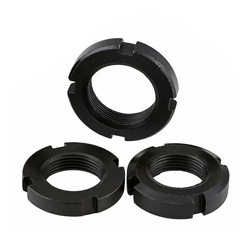 في صناعة النفط والغاز، يتم استخدام الجوز الدائري ذو القفل المشقوق المبني بشكل متين في مكونات الصمامات ومعدات الحفر. يمكن أن تعمل بشكل صحيح في البيئات ذات الضغط العالي والتآكل. معظم هذه الصواميل مصنوعة من سبائك الفولاذ ومغطاة بطبقة خاصة مضادة للتآكل.