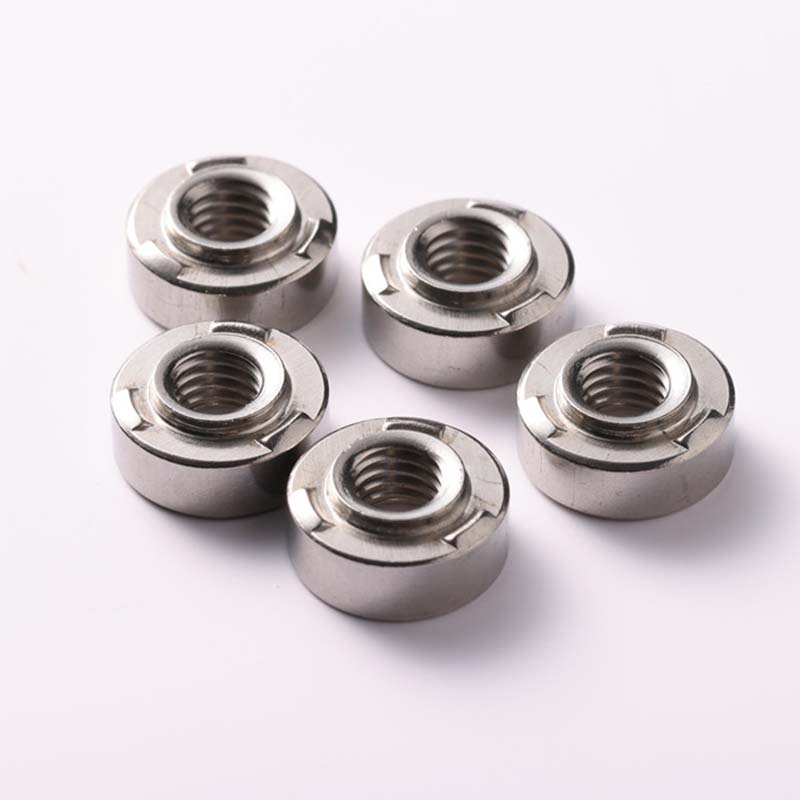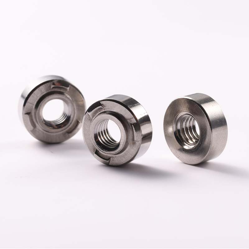 يحتوي صامولة اللحام الإسقاطية ذات التثبيت الذاتي على هيكل مسنن أو مسنن أسفل القاعدة. عندما تدفعها إلى الثقوب المحفورة مسبقًا (باستخدام مسدس أو أداة لحام خاصة)، سيتم دمج هذه المسننات في اللوحة المعدنية. بعد ذلك، يمكنك إجراء اللحام من خلال الفتحة المركزية للصامولة. سوف يقوم اللحام بتثبيته في مكانه بشكل دائم، ولكن المسننات قد ثبتته بالفعل بقوة لعملية اللحام. تم تصميم هيكل القفل الذاتي ببراعة، مما يتيح تحقيق القفل الميكانيكي في وقت واحد أثناء اللحام، مما يوفر ضمانات مزدوجة لاستقرار الاتصال. لديها قدرة قوية على التكيف مع أجزاء اللحام. سواء كانت لوحة حديدية رقيقة أو لوحة فولاذية سميكة، يمكنها إجراء اللحام والتثبيت بقوة وسلاسة.
