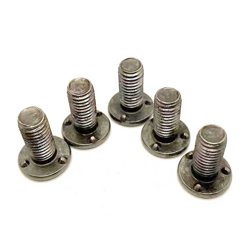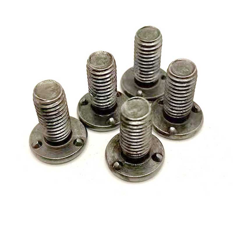 مسامير لحام الإسقاط من النوع U3 أثناء اللحام، يمكن للنتوءات الثلاثة الموجودة أسفل الرأس أن تتصل بالكامل بسطح قطعة العمل. من خلال الحرارة الناتجة عن تيار اللحام، تذوب النتوءات وقطعة العمل بسرعة وتندمج معًا، مما يشكل اتصالًا مستقرًا للغاية يمكنه تحمل قوى الشد والقص الكبيرة.